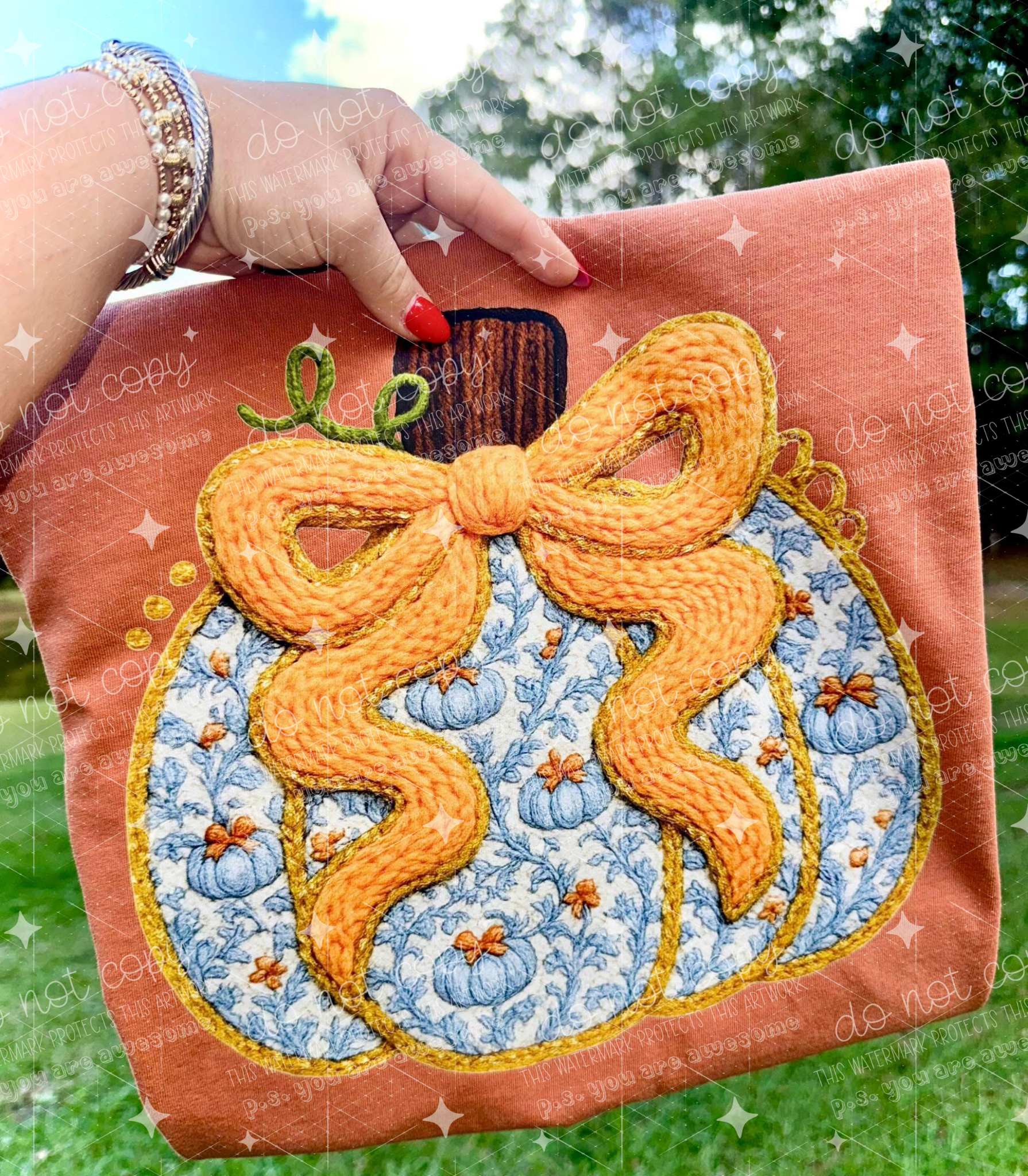 BLUE PUMPKIN FAUX YARN - DTF TRANSFER