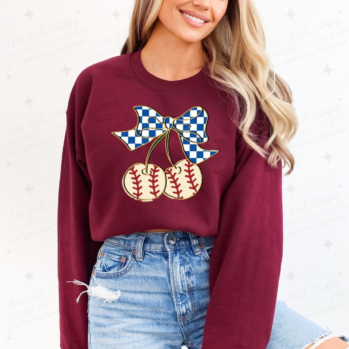 COQUETTE BASEBALL CHERRIES - FAUX GLITTER - DTF TRANSFER