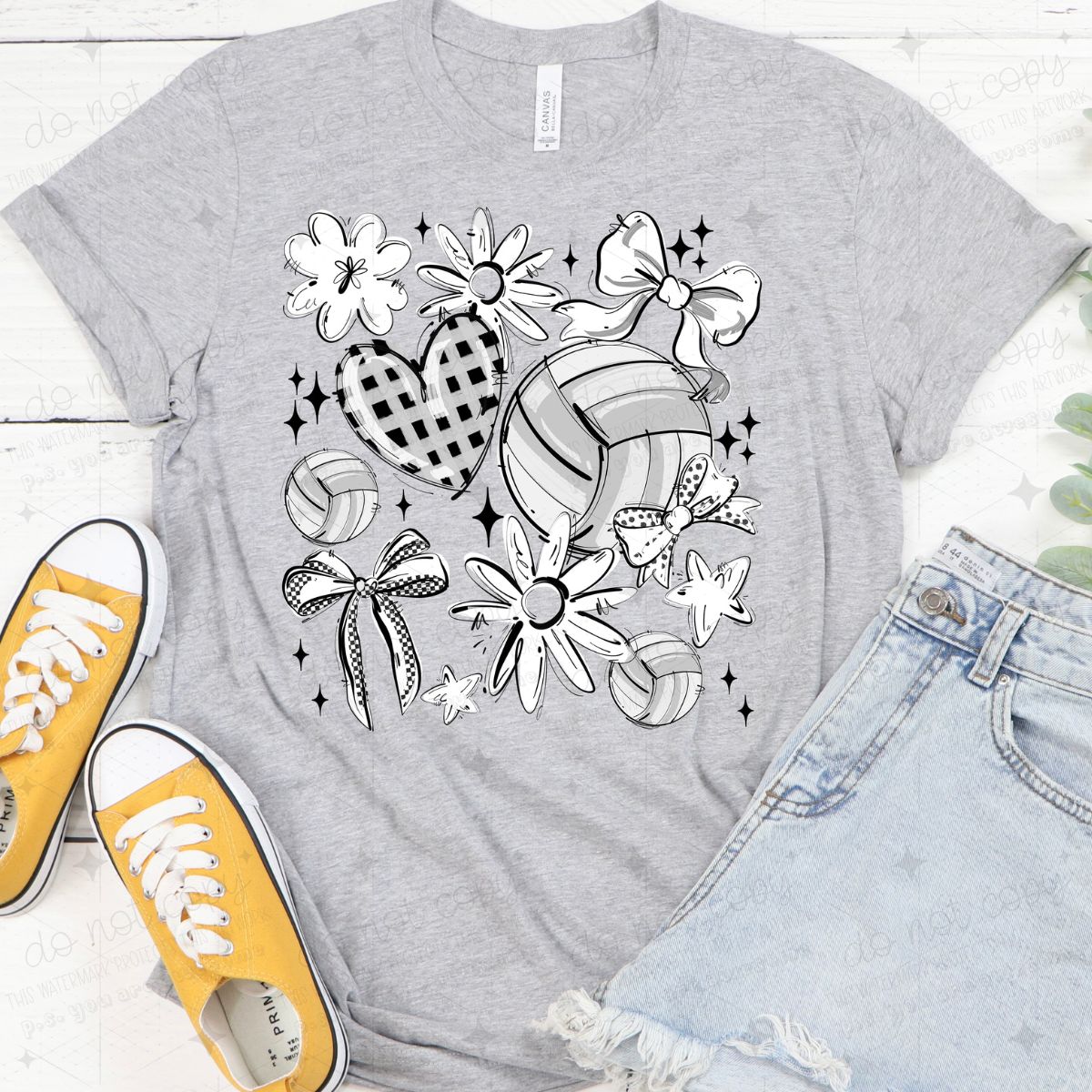COQUETTE VOLLEYBALL DOODLE - WHITE - DTF TRANSFER