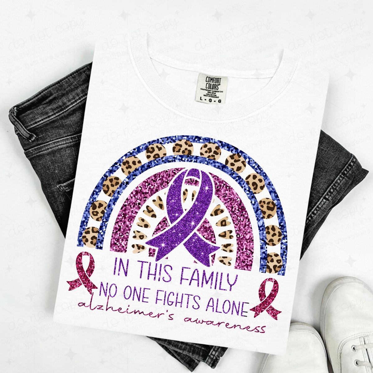 IN THIS FAMILY NO ONE FIGHTS ALONE - FAUX GLITTER - DTF TRANSFER