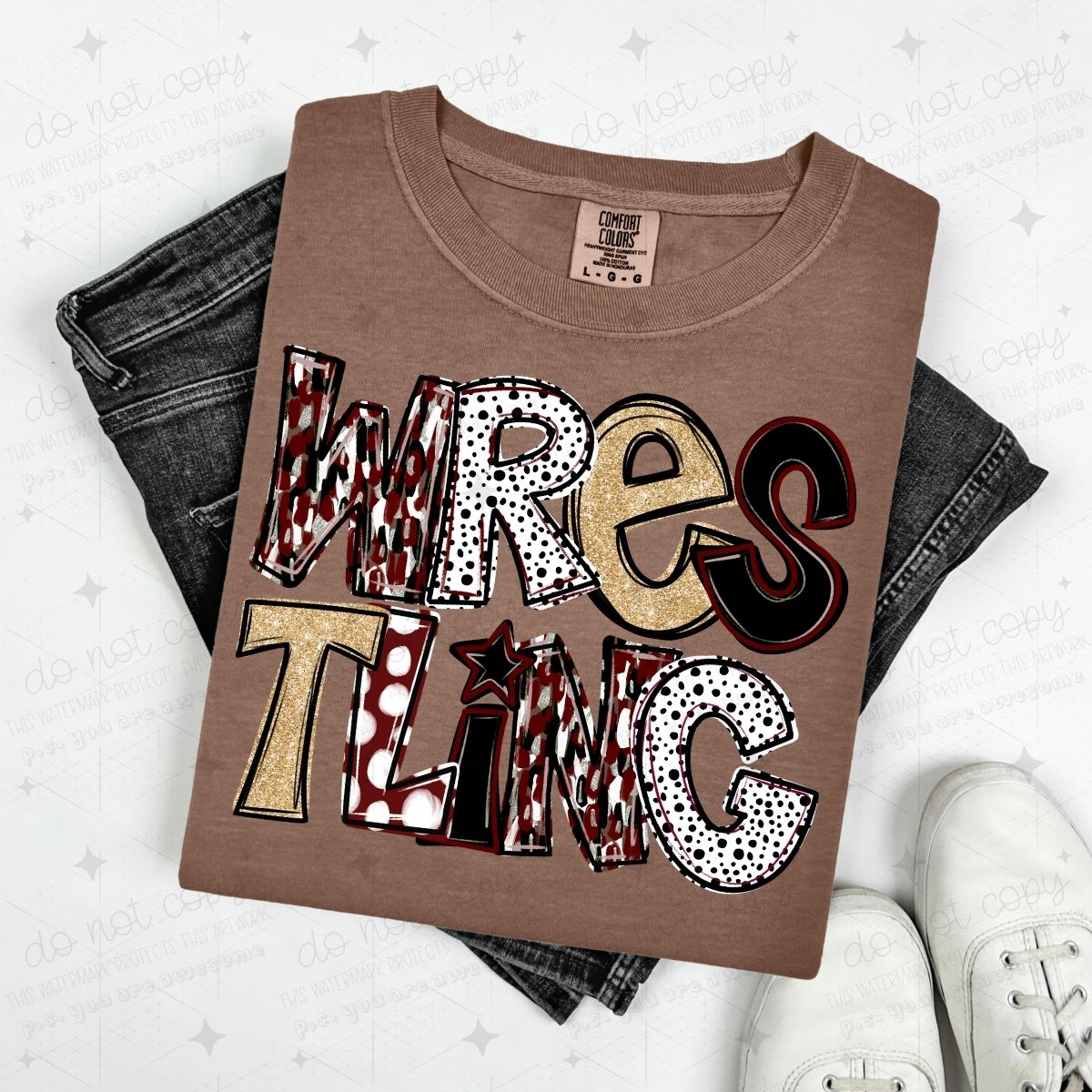 WRESTLING - MAROON/GOLD/BLACK - DTF TRANSFER